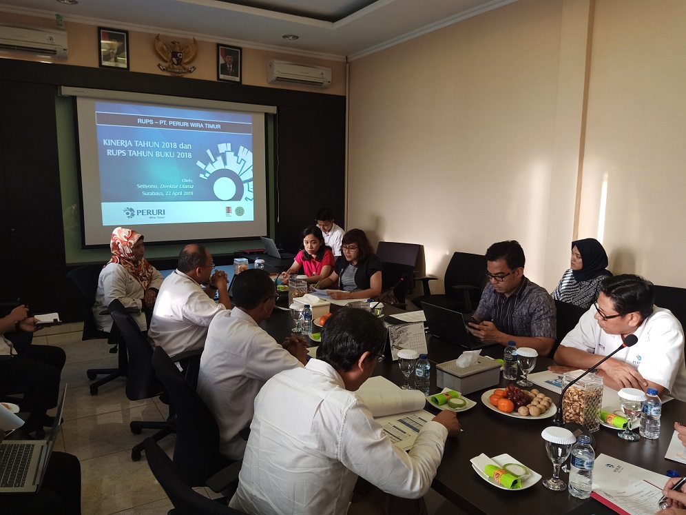 Pada hari Senin tanggal 22 April 2019 telah dilaksanakan RUPS Tahun Buku 2018 PT. Peruri Wira Timur (PWT) yang dihadiri oleh Bapak Fajar Rizki - Direktur Pengembangan Usaha Perum Peruri selaku wakil dari pemegang saham (Perum Peruri), Bapak Fauzi - Direktur PT. Panca Wira Usaha Jawa Timur selaku wakil dari pemegang saham (PT. PWU), Bapak Erlangga Satriagung selaku Komisaris Utama PWT , Bapak Ahmad Hidayat selaku Komisaris PWT, Bapak Setiyono selaku Direktur Utama PWT, Bapak M. Arief Wicaksono selaku Direktur PWT, Notaris beserta para undangan lainnya.